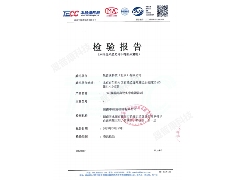 S-569数据机房设备带电清洗剂检测报告