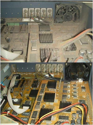 石油化工行业设备在长期的连续运行过程中,因大气中漂浮的各种尘垢、金属盐类、油污等综合污染物,通过物理的吸附作用,微粒的重力沉降作用淀积于电力电气设备表面,而造成设备的严重污染,使设备的散热能力下降,影响其运行质量和运行可靠性。这些污染物还对设备内的电路形成附加的"微电路效应",导致"缓慢腐蚀"作用,不同程度地引起电力电气设备的接触不良,阻抗降低、漏电、短路、误码、坏板等造成线路损耗、传输信号减弱、传输速率和质量的不稳定等软性故障率的升高。